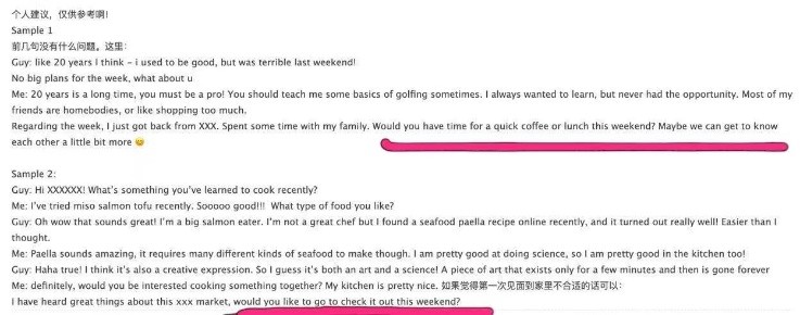 在这个帖子里,我看到一个回复,层主对楼主举的例子提出了自己的对话方案。对她具体的话术我不做评价,不过我非常不赞成她在每一个例子的结尾都提出邀约。
